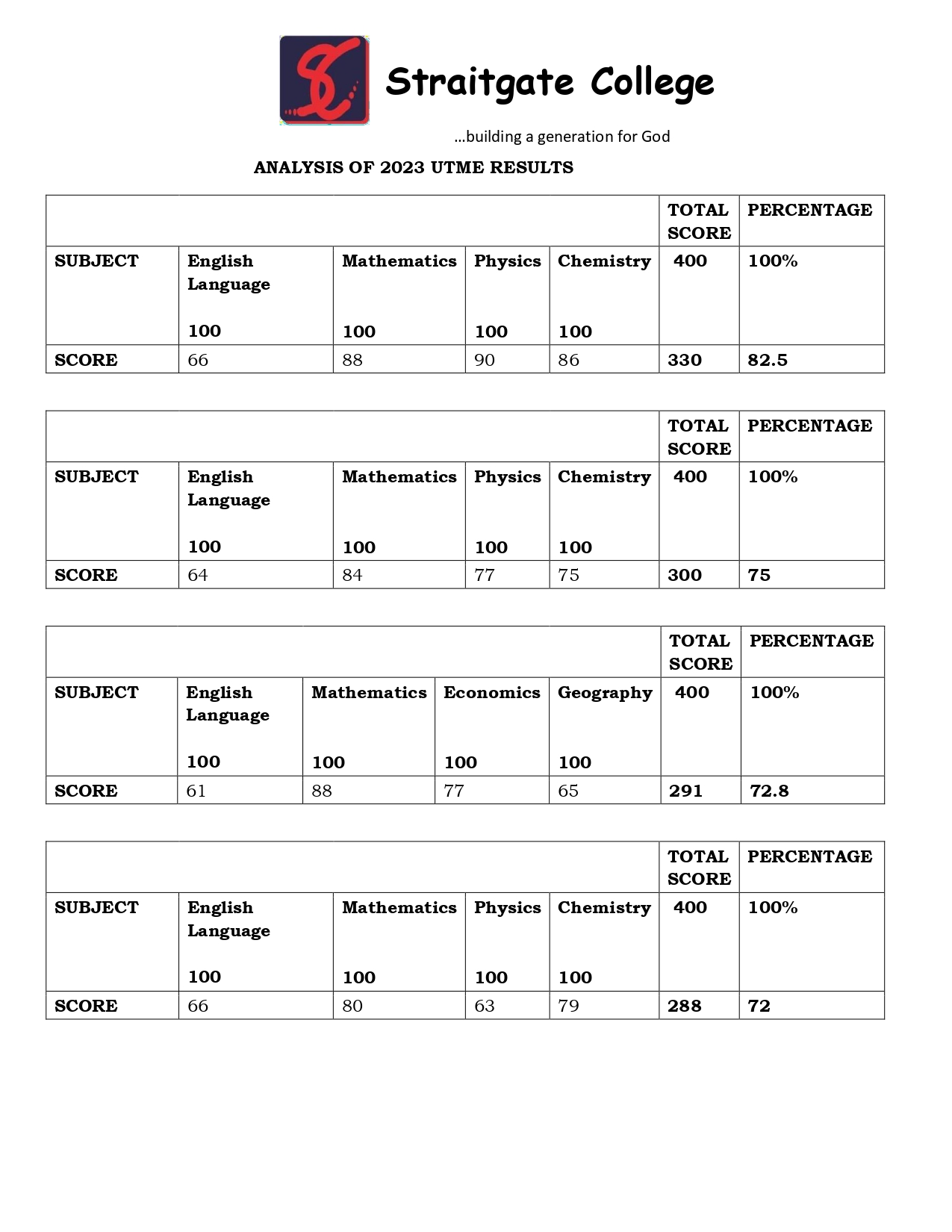 Straitgate College, Road E, House 8 Forthright Gardens Estate Magboro, Ogun State.